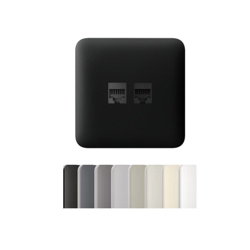 Function: Single front panel for a two-port Ethernet socket (RJ45). Compatibility: Exclusive to the Ajax OutletCore LAN network mechanism. Installation Type: Standalone installation (not compatible with side-by-side mounting in multi-gang frames). Design: Curved on both sides for a perfect aesthetic fit in a single frame. Important Notice: This piece is the finishing cover only. It requires the purchase of the internal mechanism (AJ-OUTLETCORE-LAN) and a single frame (Ajax Frame 1).
