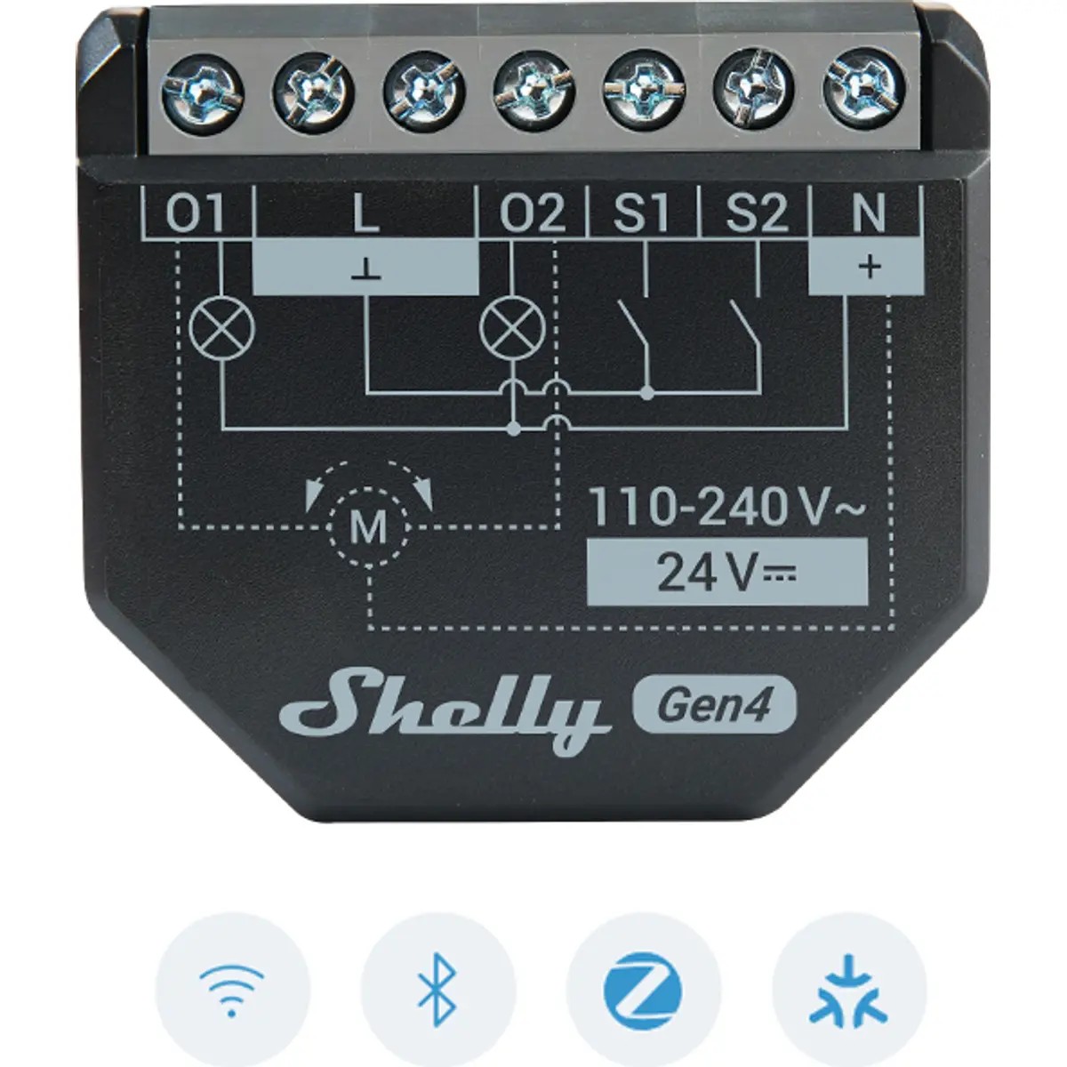 The Shelly 2PM Gen 4 is Shelly's latest generation solution for lighting and electric shutter control. This dual-channel device is highly versatile, operating as two independent switches or in "Cover" mode for precise management of blinds, awnings, and gates.