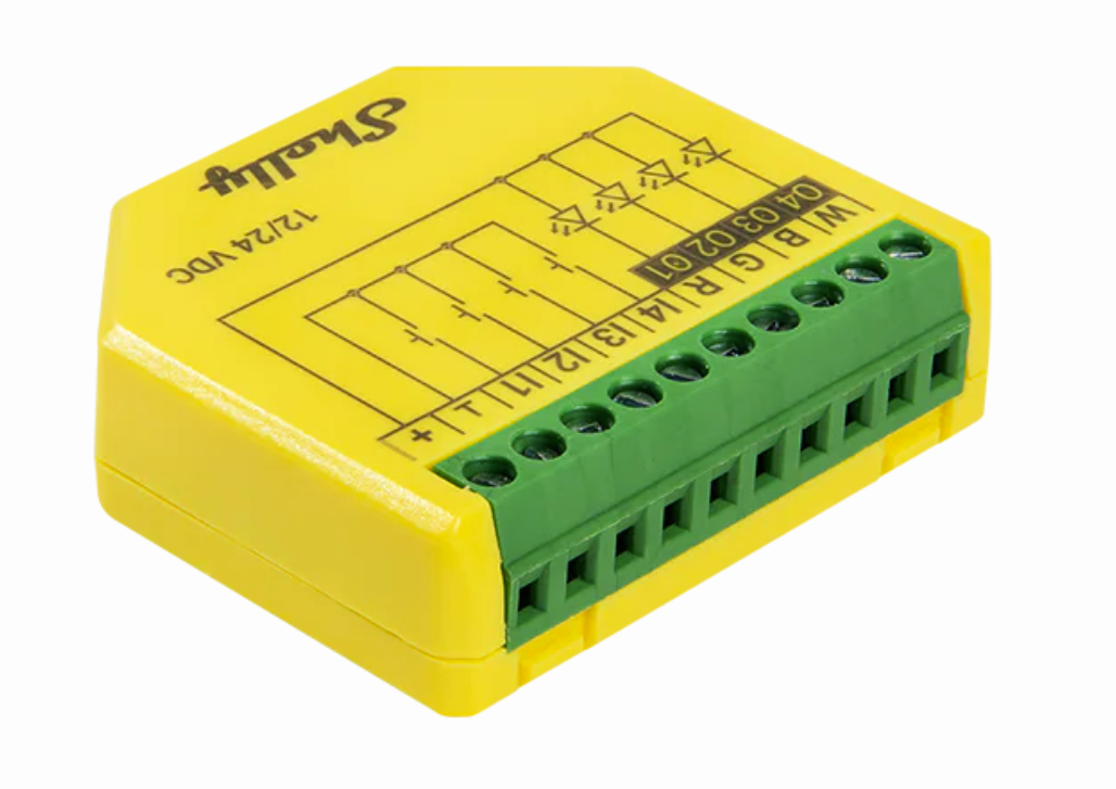El Shelly Plus RGBW PM es la evolución tecnológica para el control de iluminación LED de baja tensión. Equipado con el potente procesador ESP32 de la línea Plus, este dispositivo ofrece una velocidad de respuesta inigualable y la nueva funcionalidad de medición de energía, permitiendo monitorear el consumo eléctrico de sus tiras LED en tiempo real.