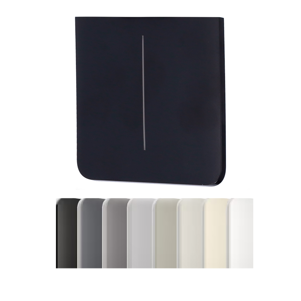 O Ajax SideButton 2G Vertical é a tampa frontal tátil desenhada especificamente para ser instalada nas extremidades (topo ou base) de painéis múltiplos verticais (Ajax Frame Vertical). Com a sua superfície dividida em duas zonas de toque, é a peça de acabamento essencial para os relés inteligentes Ajax LightCore de 2 botões (2-gang). Permite ativar duas linhas de iluminação independentes, quer por toque direto, quer por aproximação da mão (até 15 mm), garantindo um design limpo e higiénico.