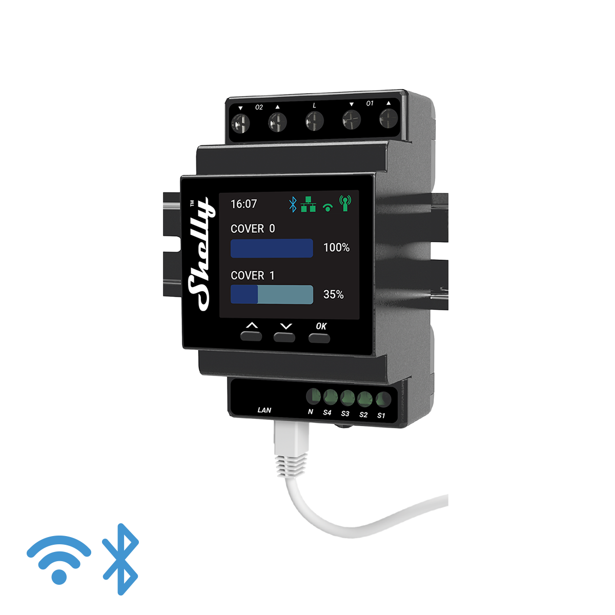 "description": "The Shelly Pro Dual Cover PM is an intelligent controller for blinds, awnings, or other electric devices that have a bidirectional AC motor. It allows the control of two motors, can be mounted on a DIN rail, and has power measurement capabilities.",