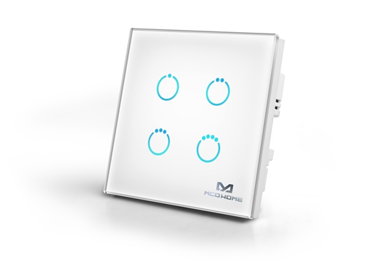The MH-S314 is a glass-surface wireless actuator able to to switch 4 separate oads up to 1100 W. It is designed for application in UK Pattress boxes (according to British Standard).