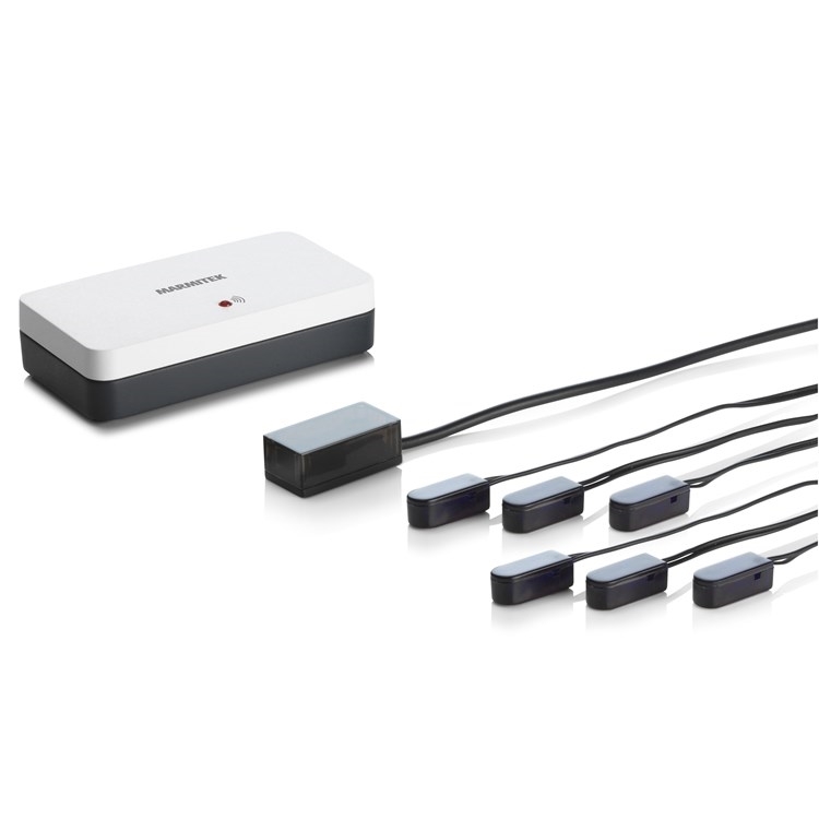 The Marmitek Invisible Control 6 makes it possible to operate equipment inside a closed cabinet. The set consists of a receiver, a module and 6 emitter LEDs. You stick an emitter LED on each device you want to operate. This enables you to operate up to 6 devices that are inside a closed cabinet, using your own remote control.