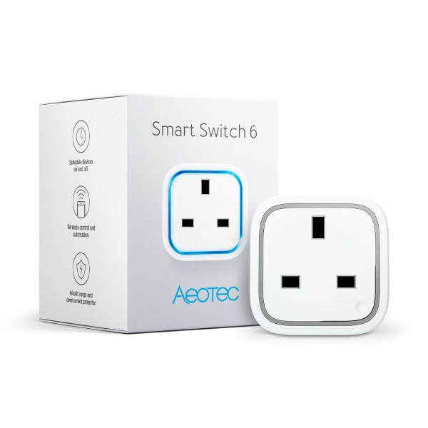 Información del producto "Aeotec Smart Switch 6 (Tipo G)"El Aeotec Smart Switch 6 es un enchufe adaptador controlable a distancia inteligente que puede controlar y monitorear cualquier dispositivo eléctrico. Debido a su función de medición de energía, puede identificar todos los comedores de energía en su hogar. Como característica especial, el Aeotec Smart Switch tiene un puerto USB adicional, que se puede usar, por ejemplo, para cargar su teléfono inteligente de manera conveniente.