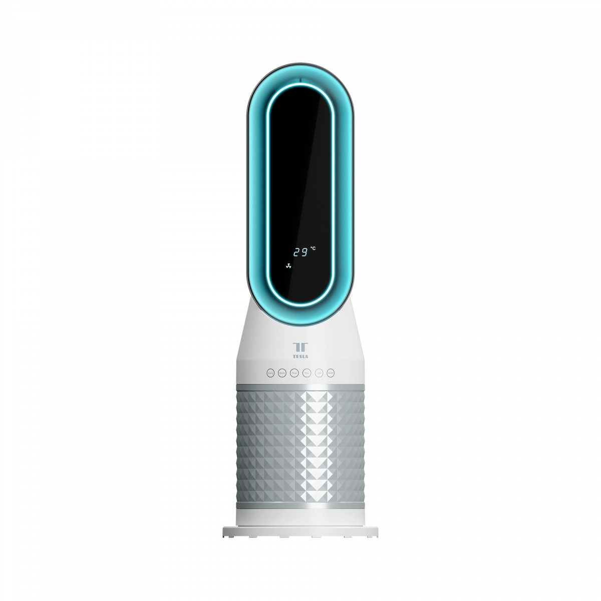 Permíteme presentártelo. Es delgado y muy atractivo. Te mantendrá caliente y, cuando lo desees, se iluminará en colores para ti. Este es el Calentador Inteligente TESLA HTR300. Con la ayuda de un motor de alta velocidad que proporciona 2 niveles de calefacción junto con un modo de ventilación, el Calentador Inteligente TESLA puede calentar tu habitación a la temperatura deseada y mantenerla automáticamente sin necesidad de intervención adicional, gracias al moderno método de calefacción PTC, que es eficiente, económico y seguro.