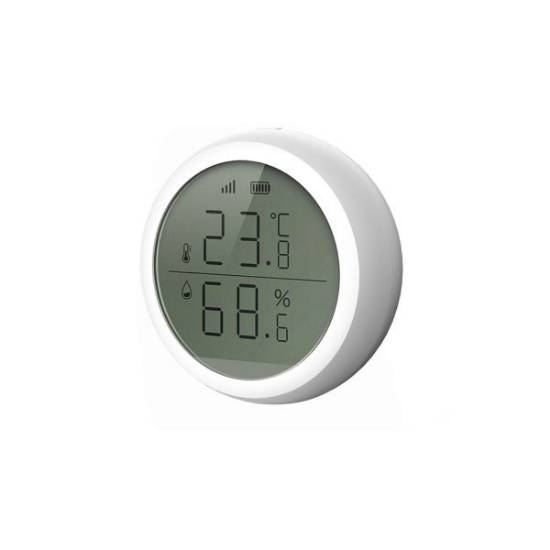 Sensor Inteligente de Temperatura y Humedad con Pantalla Zigbee ID: TSL-SEN-TAHLCD Notificación de Batería Baja: Sí Alimentación: 2 pilas alcalinas 1.5V LR03 / AAA Rango de Temperatura de Operación: -10 a 55 °C Rango de Humedad de Operación: 0-99.9 % RH Dimensiones: Ø61.2 x 23 mm Conectividad: Zigbee Aplicación TESLA Smart: Google Android 6.0+, Apple iOS 11.0+