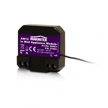 O AW12 funciona como actuador de cargas (On/Off). Suficientemente pequeno (46 x 46 x 17 mm) para encaixar numa caixa de parede atrás de um interruptor. Trabalha com qualquer controlador X-10, pois é um módulo receptor de sinais X-10. O relé interno pode também ser accionado externamente por interruptores ou botões de pressão convencionais. Se for utilizado um botão de pressão, o relé muda de estado cada vez que este é pressionado ( O código de casa e de unidade são programados utilizando qualquer controlador x-10 compatível. Existe uma memória EEPROM que guarda esses códigos, mesmo quando houver corte de energia.