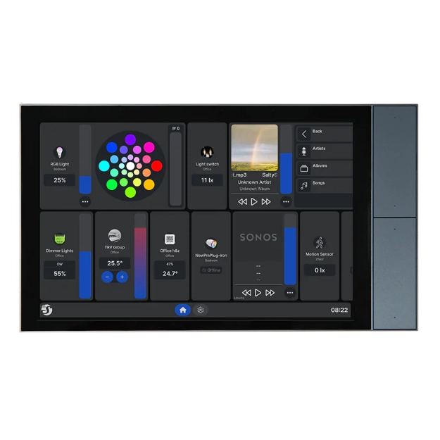 O Shelly Wall Display XL é o comando central definitivo para a domótica moderna. Com um ecrã vibrante de 7 polegadas, este painel oferece uma interface visual rica para gerir dispositivos, cenas e grupos de toda a habitação. Graças ao suporte para Power over Ethernet (PoE), é a solução ideal para instalações profissionais, garantindo alimentação e dados estáveis através de um único cabo.